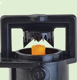 Unique Nozzle and Spreader Design Unique nozzle structure forms turbulent flow and wide water pathways even at low flow rates, for high clogging resistance |